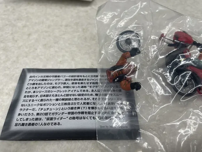 こちらはトレーディングフィギュアとしての販売。ライダーマシンと爆発煙やストラクチャーを組み合わせたジオラマ(ヴィネット)となっています。ボックス単位でお譲りいただき、シークレットのモグラ獣人付きのジャングラーも含まれておりました。