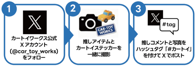1、カートイワークス公式Xアカウント(@car_toy_works)をフォロー