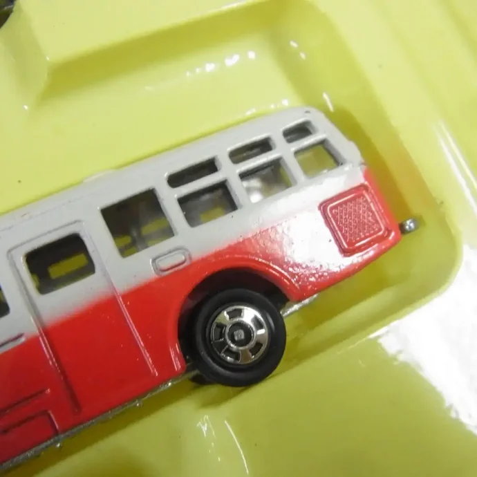 1976年に発売した初期の方のギフトセットで、「はとバス」「マツダライトバス」「ふそうワンマンバス」「ニュークラウンタクシー」のトミカがセットになっています。