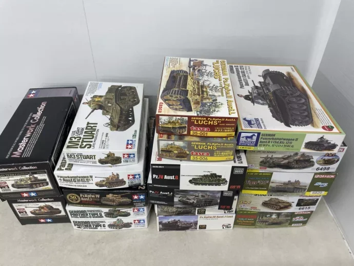 | 商品名 | 「タミヤ マスターワークコレクション 1/35 ドイツ軍重戦車タイガーI 初期生産型」「タミヤ マスターワークコレクション 1/35 ドイツ軍重戦車 キングタイガー・ヘンシェル砲塔」「ボークス 造形村 1/32 雷電」「エデュアルド 1/48 ROYAL CLASS Fw 190A-8/R2」「エッチングパーツ各種」等 |