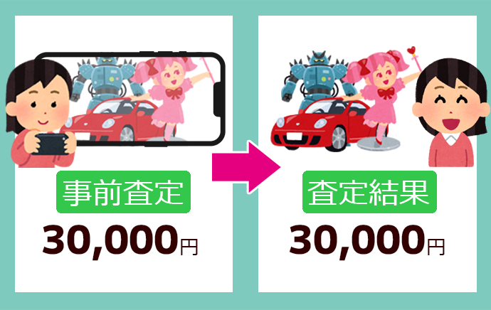 カートイワークスではお客様を第一に考え、事前に頂いた情報を元にお出しさせて頂いた査定(見積)金額で買い取りを行わせていただく「事前査定金額保証」を実施しています。(※お見積の有効期間は原則2週間)