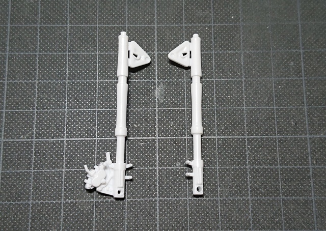 ミラーステーのパーツの比較画像です。ミラーステーには塗分けの工程があります。