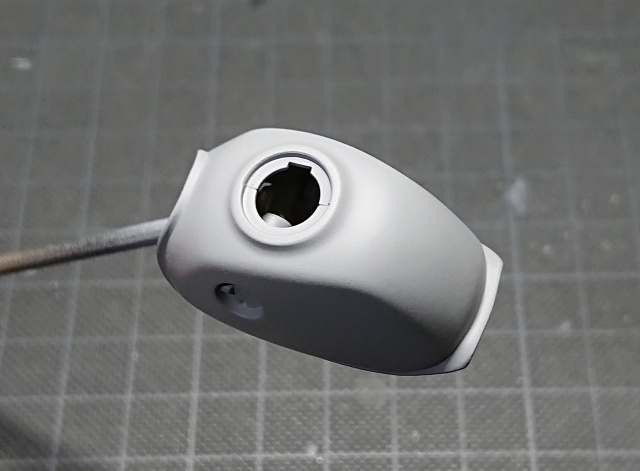 合わせ目の処理が上手く行ったのかどうかを見るために、グレー色のサーフェイサーを吹きました。画像でお分かり頂けると思いますが、合わせ目が消えていることが確認出来ると思います。これが「合わせ目消し」の工程となります。