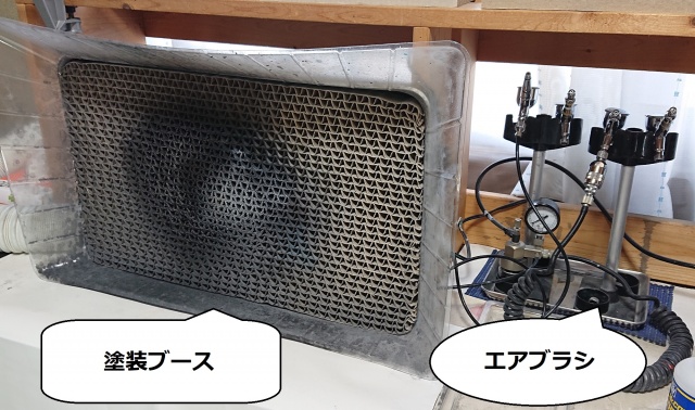 また塗装ブースは、塗装時のミストを吸収して外に出す役目を果たしているのでこれは環境が許されるなら置いておいた方が良いですね。何より天候に左右されないで部屋で塗装出来るのが良いです。参考まで。