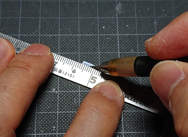 0.5㎜で画像の所に穴を開けます。貫通しないように注意しつつ。
