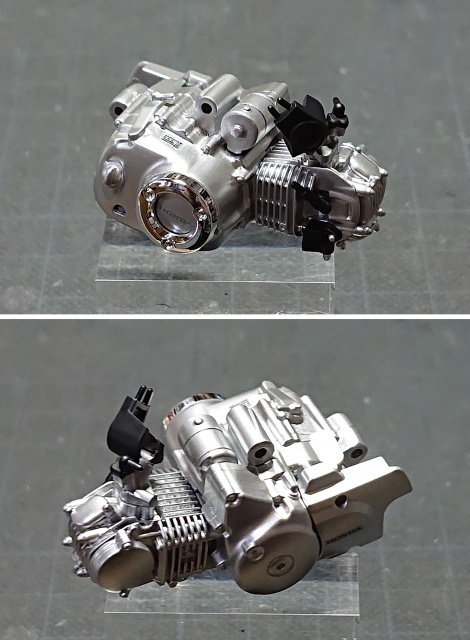 エンジンの完成画像です。塗装をすると素材がプラスチックに見えないですね。