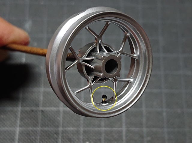 ホイールはブラックサーフェイサーを下地にシルバーリーフを塗装。