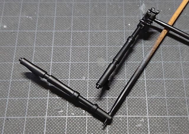 フロントを組んだらハンドルバーの取り付けです。接着剤がはみ出ないように注意して固定してください。