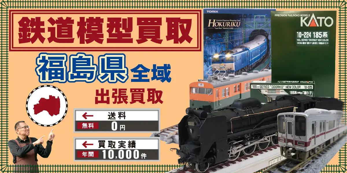 カートイワークスは埼玉県に本店を置く鉄道模型買取専門店です。福島県にお住まいの方から宅配買取のご相談も数多くいただいております。