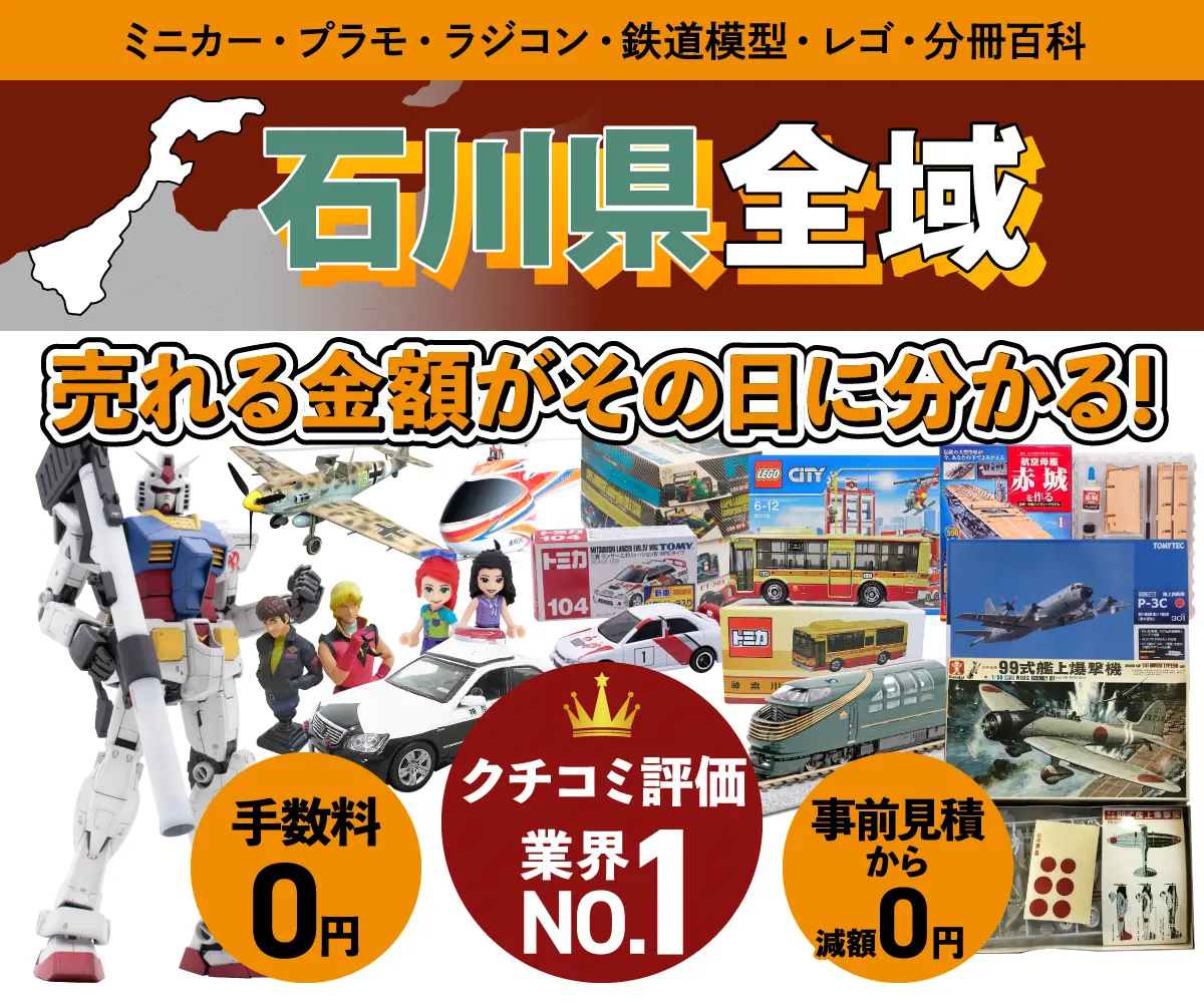 カートイワークスは埼玉県に本店を置く乗り物ホビー買取専門店です。石川県にお住まいの方から宅配買取のご相談も数多くいただいております。