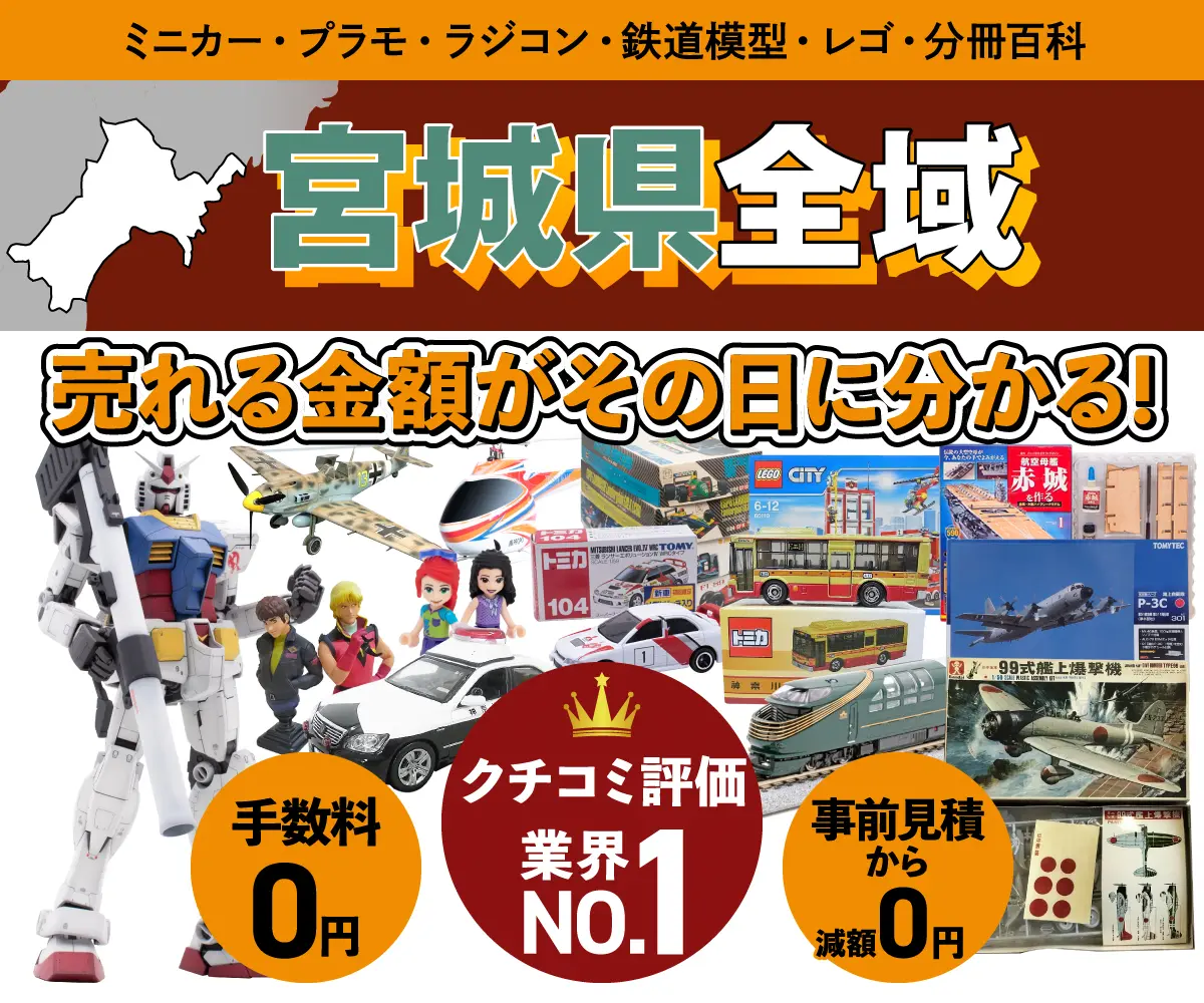 カートイワークスは埼玉県に本店を置く乗り物ホビー買取専門店です。宮城県にお住まいの方から宅配買取のご相談も数多くいただいております。