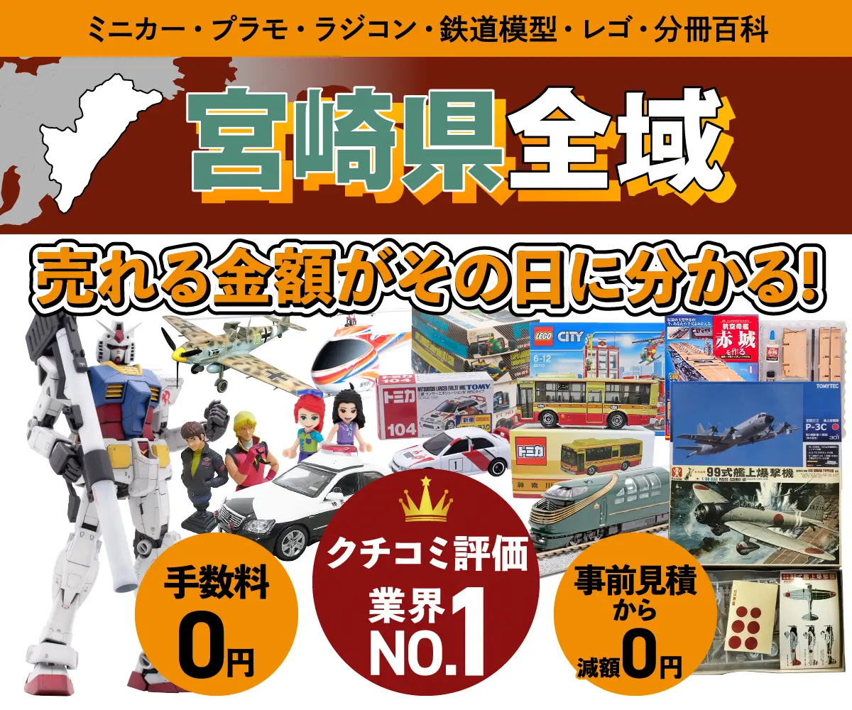 カートイワークスは埼玉県に本店を置く乗り物ホビー買取専門店です。宮崎県にお住まいの方から宅配買取のご相談も数多くいただいております。