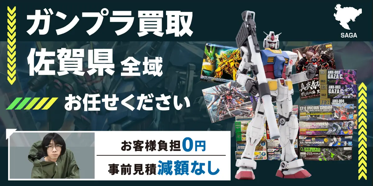 カートイワークスは埼玉県に本店を置くガンプラ買取専門店です。佐賀県にお住まいの方から宅配買取のご相談もいただいております。