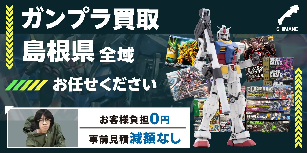 カートイワークスは埼玉県に本店を置くガンプラ買取専門店です。島根県にお住まいの方から宅配買取のご相談もいただいております。